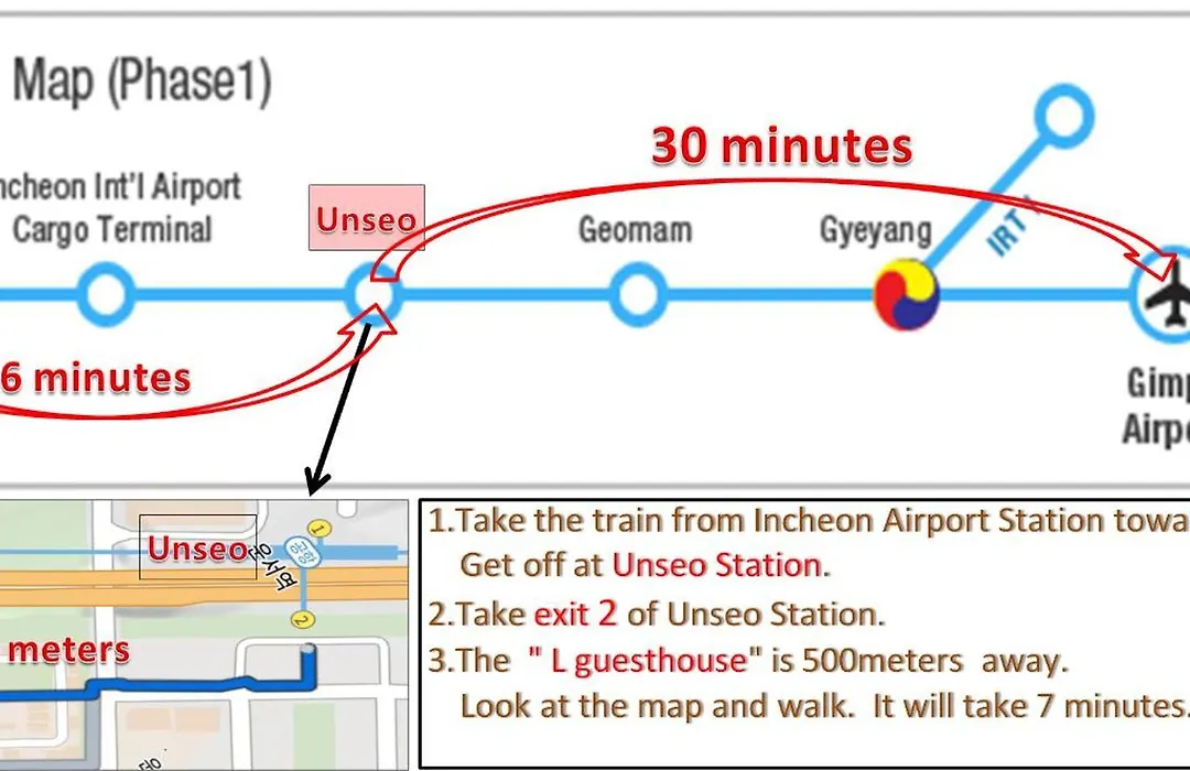 インチョン広域市のホテルは、仁川国際空港から約5で、Incheon Yeongjong Libraryなどの文化施設から歩いて10分以内です。 Seaside Park Administration Officeもこのゲストハウスから3.7キロメートルの場所にあります。 近くの有名な宗教建築物には、インチョン広域市のAirport Guesthouse Lから自動車で15分龍宮寺があります。 最寄りの地下鉄駅は 雲西駅で、宿泊施設から約500メートル先にあります。